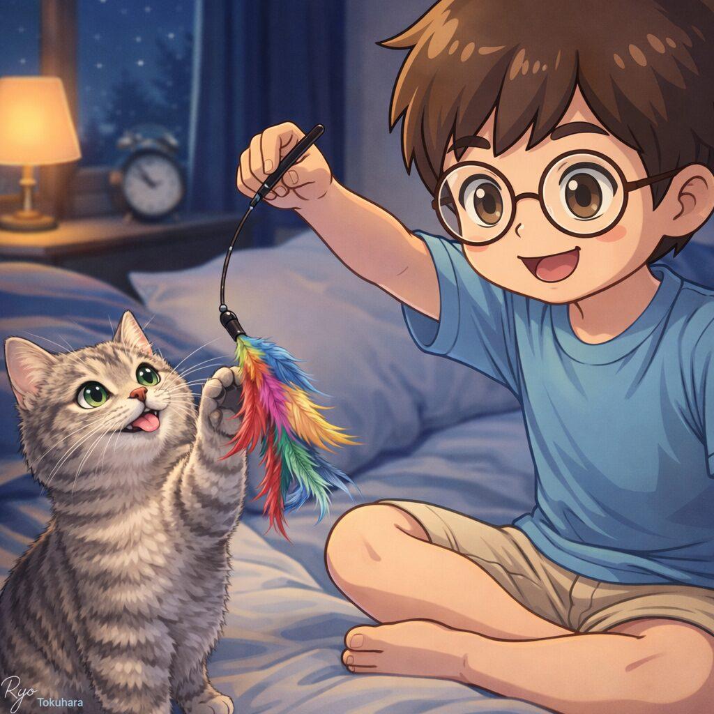 寝る前に短時間でも遊ぶと、落ち着くことがあります。
