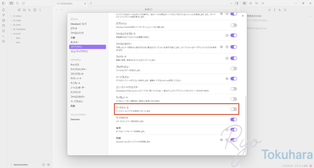 - デイリーノートが開かないのは「ワークスペース」機能が原因