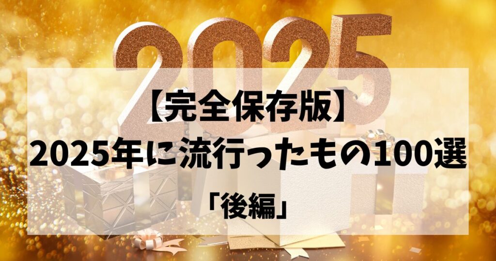 この記事は「2025年に流行ったもの100選」の後編(51〜100)です。 全体の導入とカテゴリ一覧はMain記事に、前半(1〜50)は前編にまとめています。 後編では、美容・コ... -